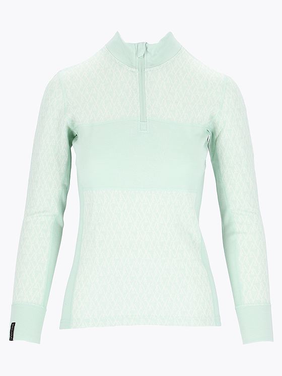 Myk ulltopp med høy hals med glidelås og jaquardstrikket mønster. Laget i kløfri ullblanding med myke flatlocksømmer. Brukes som innerste lag både ved høy og lav aktivitet. Isolerer godt også i våt tilstand.