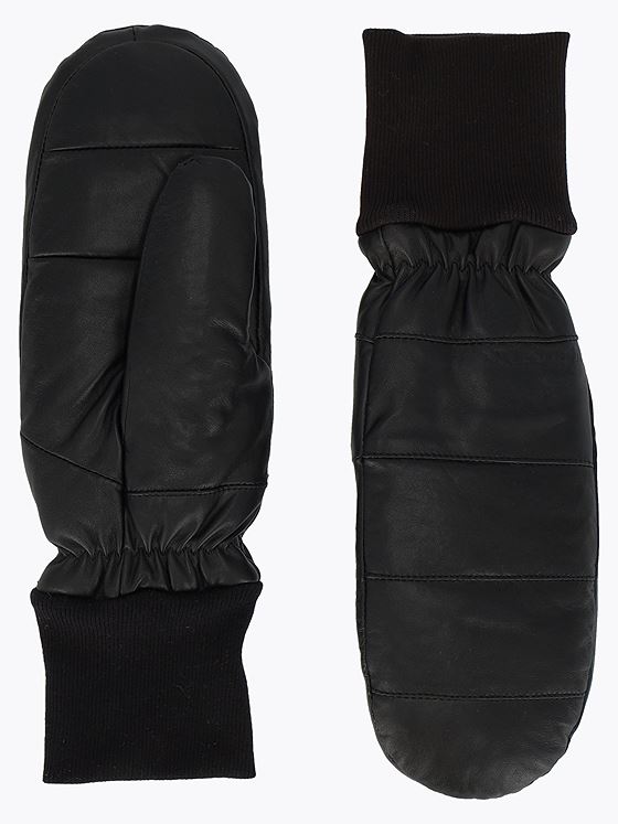 Skinnhanske i mykt saueskinn, med fór i resirkulert polyester. Elastikk rundt håndledd.