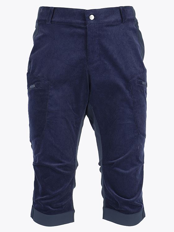Nikkers i kombinasjon av myk cord og elastisk softshellmateriale. Lårlommer med glidelås og justeringsmulighet nede på ben. Smal silhuett med leddede knær og bred strikk i livet.
