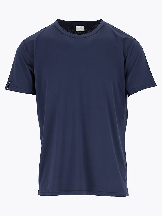 En behagelig og lett t-skjorte i mykt, teknisk materiale som puster godt og tørker raskt. Meshpanel under armer og på rygg for ekstra ventilering. T-skjorten har myke flatlocksømmer for å forhindre slitasje.