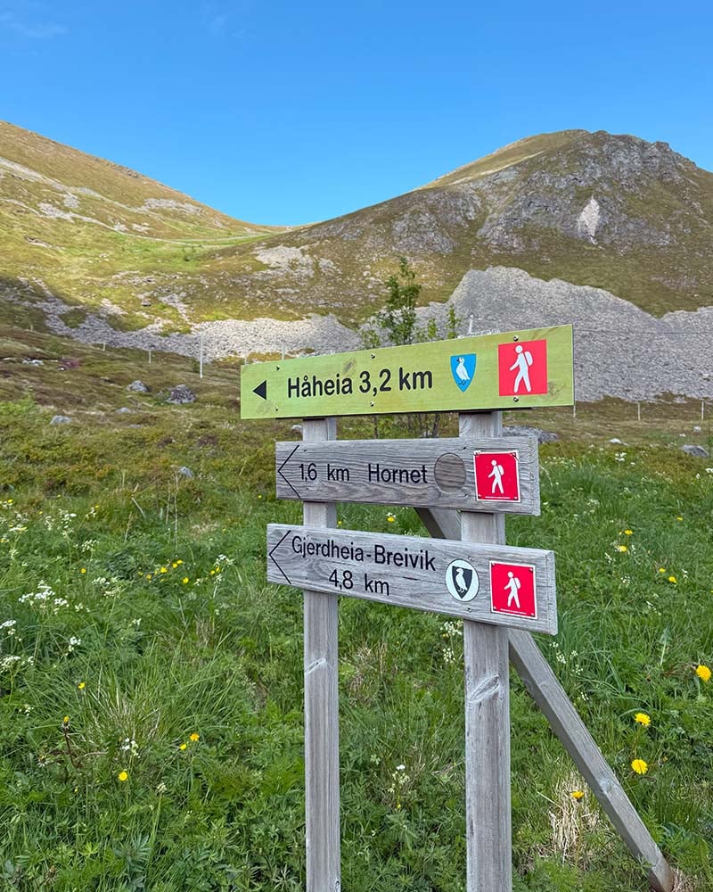 Først må du ta ferge fra Bodø eller Moskenes. Det finnes ingen direkte ferge og fergetidene er svært begrensede, så planlegg godt i forkant. Startpunktet for turen finner du i Rømdalen. Stien er merket, og godt synlig herfra.