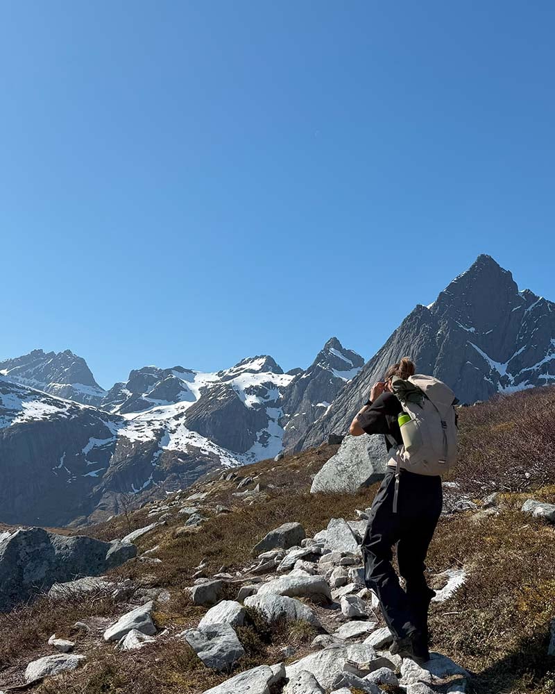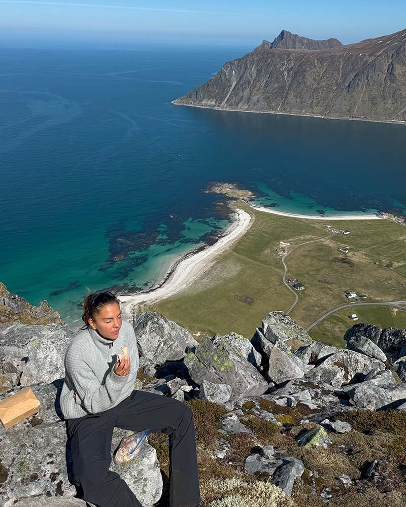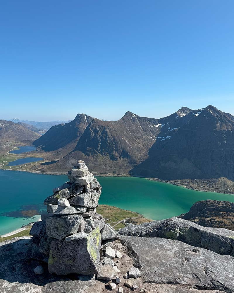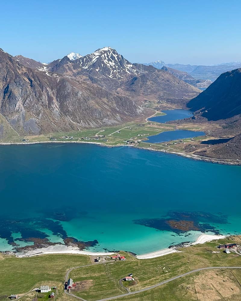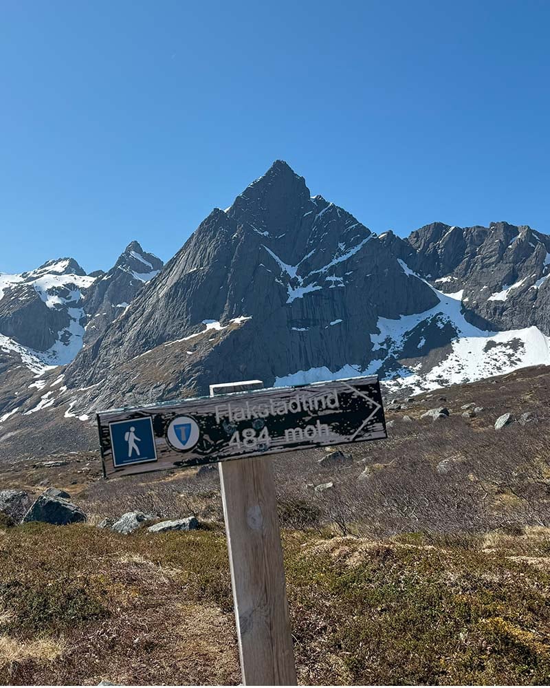 Flakstadtinden er en av Lofotens skjulte perler. Selv om toppen ikke er blant de høyeste i området, byr den på en av de mest spektakulære utsiktene du kan finne i hele øyriket. Dette er turen for deg som vil ha maksimal opplevelse på minimal tid. En kort, men krevende tur som går bratt opp fra havnivå til toppen på 434 meter. Stien er bratt nesten hele veien, og det siste stykket mot toppen går i løs stein og noe luftig terreng. Belønningen er en utsikt som strekker seg fra de kritthvite strendene på Ramberg til taggete fjellformasjoner og åpent hav. Dette er Lofoten i all sin dramatiske skjønnhet.