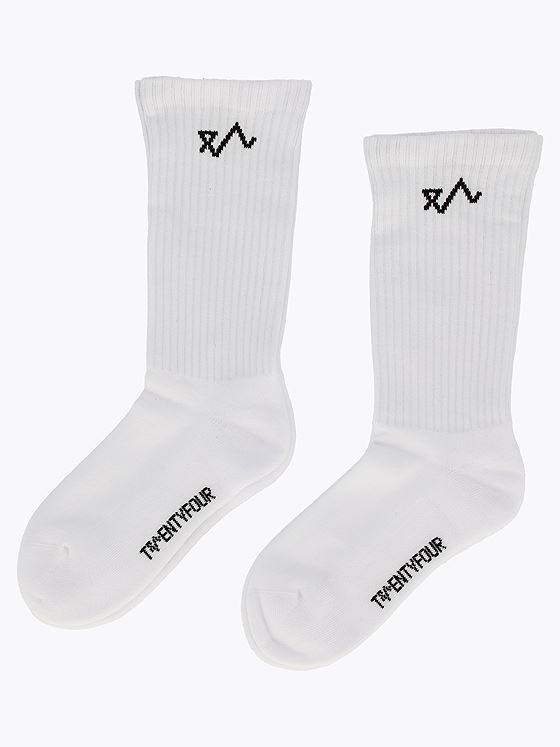 Høye sportsokker med logo. Sett med 2 par i samme fargen pakket sammen.